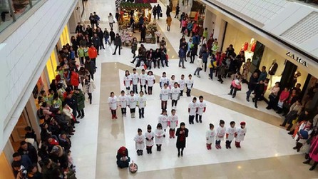 在哈西万达广场,刘冰歌老师深情款款的演唱、“卖火柴的小女孩”惟妙惟肖的表演感动着在场的所有人,大家纷纷驻足倾听,这歌声唤醒了在场每个人最善良的本性,透过这歌声将温暖与关怀落在了偏远山区孩子们的身上。