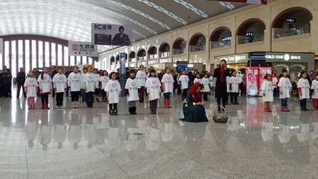 在哈西客运站里,一场“卖火柴的小女孩”的情景剧正在上演:一位衣着单薄的小女孩,挎着一个装满火柴的小篮子缓缓地走来,慢慢地跪坐在地上,寒风中小女孩蜷缩一团,火柴撒满周围,远处走来了路人,看见这个可怜的小女孩,纷纷地上来购买她的火柴,忧伤从小女孩脸上退去,身着“爱心衣橱”志愿者服装的学生们欢快地跳起了“快闪”,在黑龙江省曲艺团国家一级演员刘冰歌优美的《火柴天堂》歌声里,小女孩高兴地和大家融入一起,脸上洋溢着欢乐的笑容。情景剧的表演引来了旅客纷纷驻足,每次演出完周围都响起热烈的掌声。