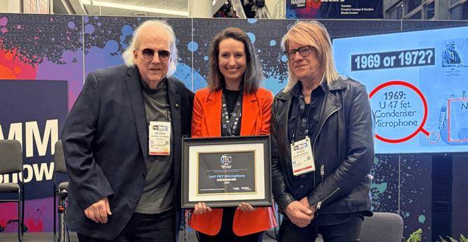诺音曼的经典麦克风U 47 fet于2026年1月22日在阿纳海姆正式入选TECnology名人堂。诺音曼首席执行官Yasmine Riechers代表历届全体诺音曼团队接受此项殊荣。继两年前M 49入选名人堂后,此次诺音曼麦克风的再次入选进一步巩固了诺音曼在麦克风创新领域的领导地位。至此,已有十款诺音曼产品获此殊荣,诺音曼成为TECnology名人堂历史上获奖最多的制造商。